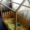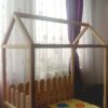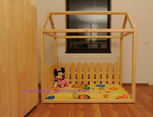 Pat Căsuță, este realizat din lemn natural, taiat si slefuit manual, cu margini rotunjite. Pat Căsuță este acoperit cu lac ecologic pe baza de apa, transparent.
