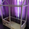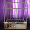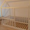 Pat Căsuță, este realizat din lemn natural, taiat si slefuit manual, cu margini rotunjite. Pat Căsuță este acoperit cu lac ecologic pe baza de apa, transparent.